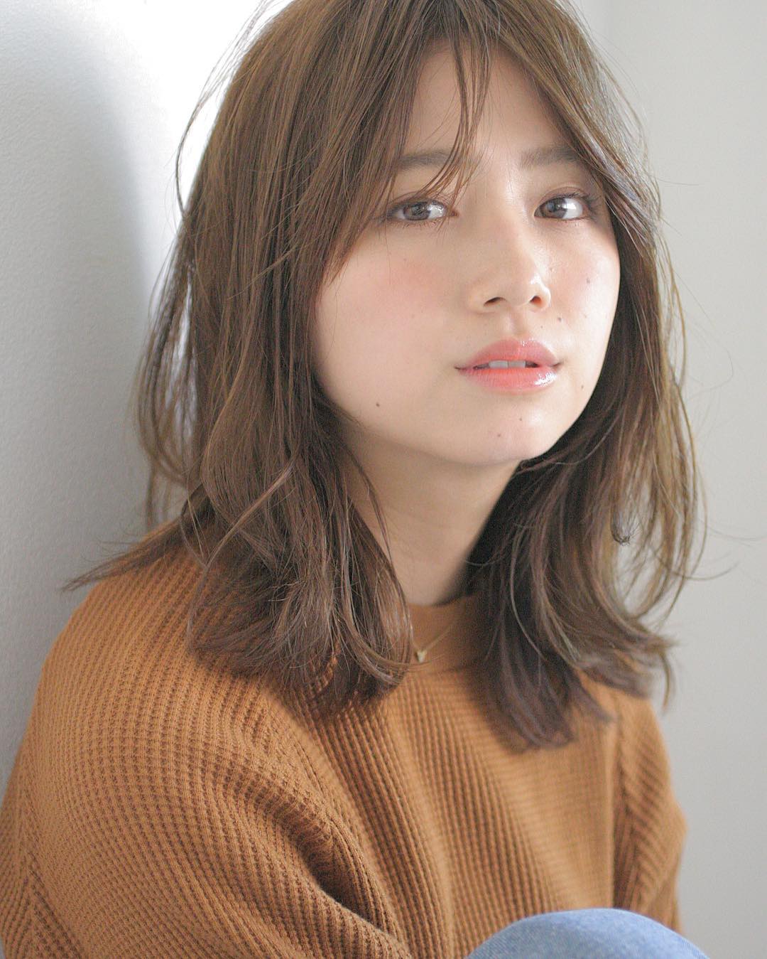 いい子ちゃんになりがちな暗髪×ミディアムも、中間あたりから無造作にくびれラインを作ることで親しみやすいカジュアル感をプラス。「え?くびれ」ってくらいさりげなく取り入れるのが正解。