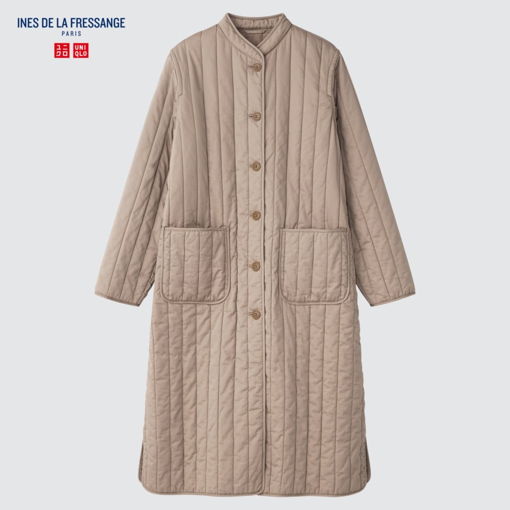 ストライプ柄とスタンドカラーでスッキリとした印象に仕上がっている「キルティングコート」です。価格は税込み9,990円となっていますよ。こちらは、ユニクロ×イネスのコラボ商品。手縫いに発想を得た立体感のある表情を再現しています。サッと羽織るだけでトレンドライクに仕上がるコートですよ♡