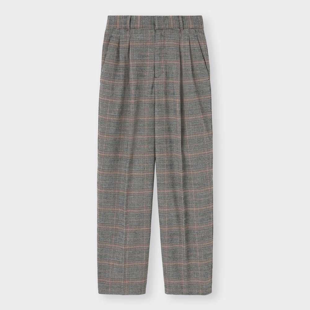 セットアップ可能なボトムスはこちら♡「ツータックワイドテーパードパンツ」です。価格は税込み1,990円となっていますよ。チェック柄なので1着でも今っぽく仕上がります。セットアップで着こなすとこなれ感抜群の仕上がりに。