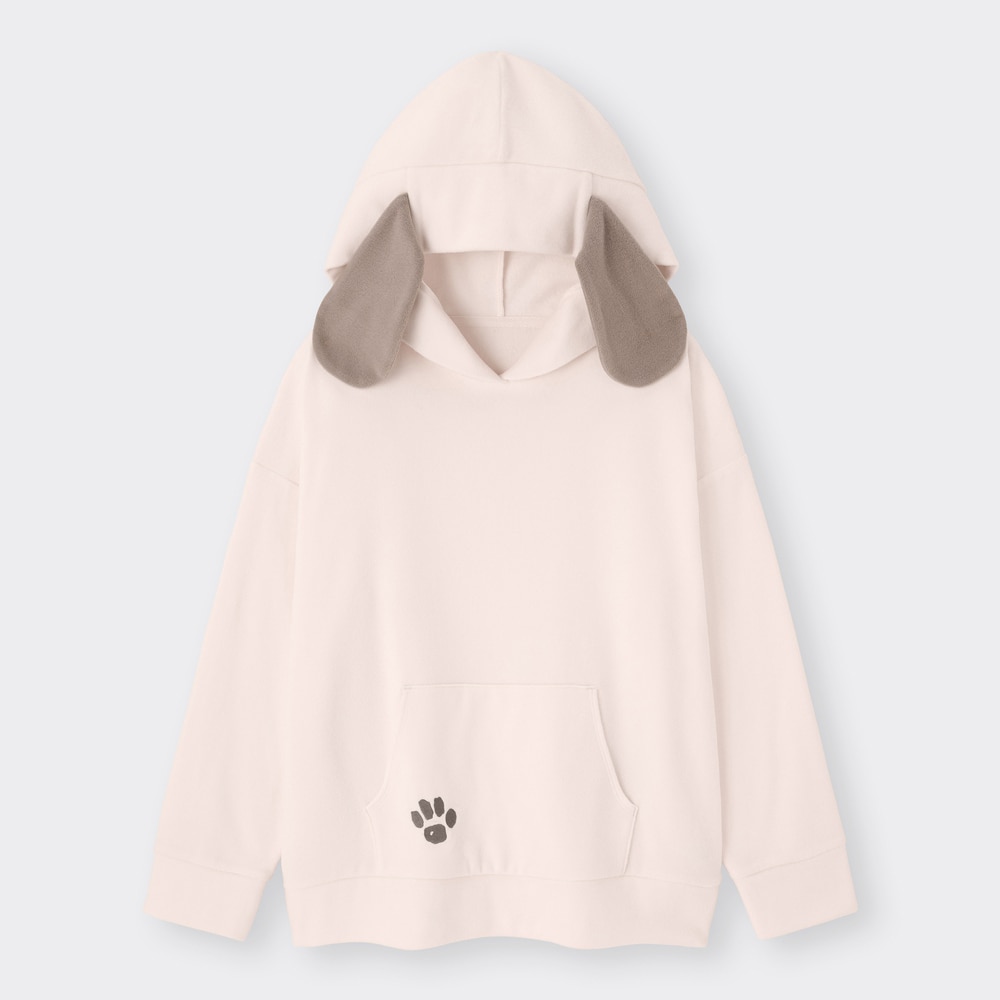 こちらは「スフレフィールパーカ」です。価格は税込み1,990円となっていますよ。大きな耳がついたとってもかわいいパーカー♡着るだけでスヌーピーになれちゃいます。ボトムスを合わせればお出かけにも行けますよ。こちらもピンクとグレーの2種類が登場しています。