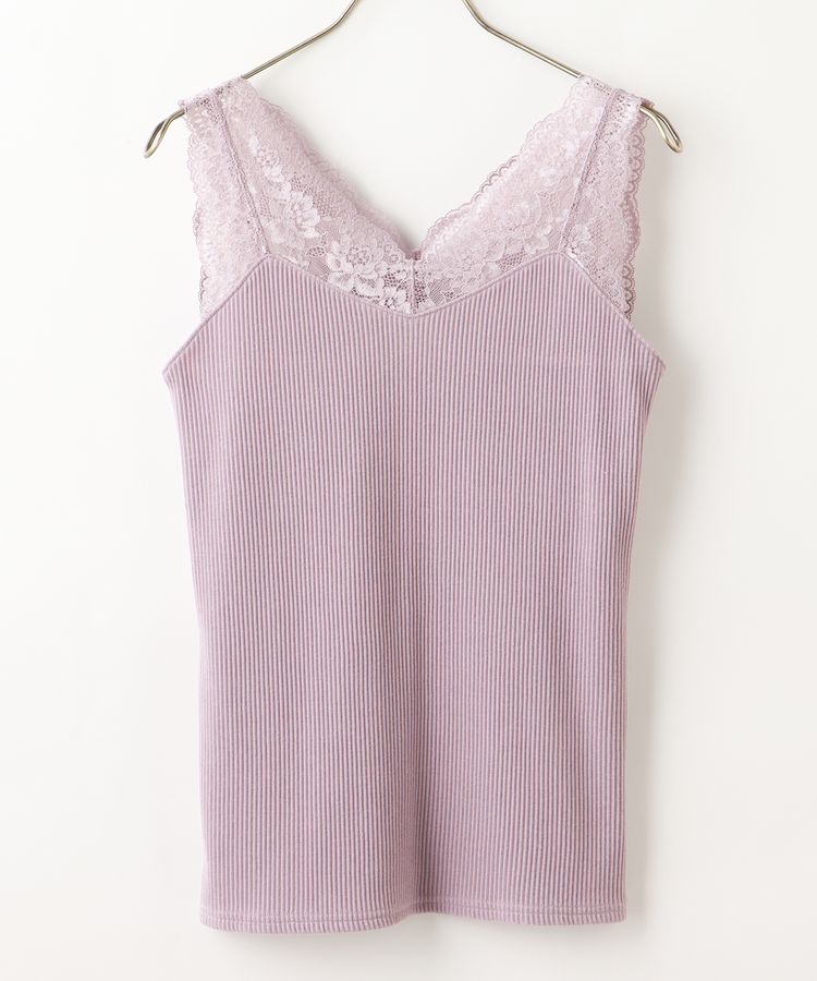 「テレコレースキャミソール」は、肩と胸元にレースをデザインしたインナーです。