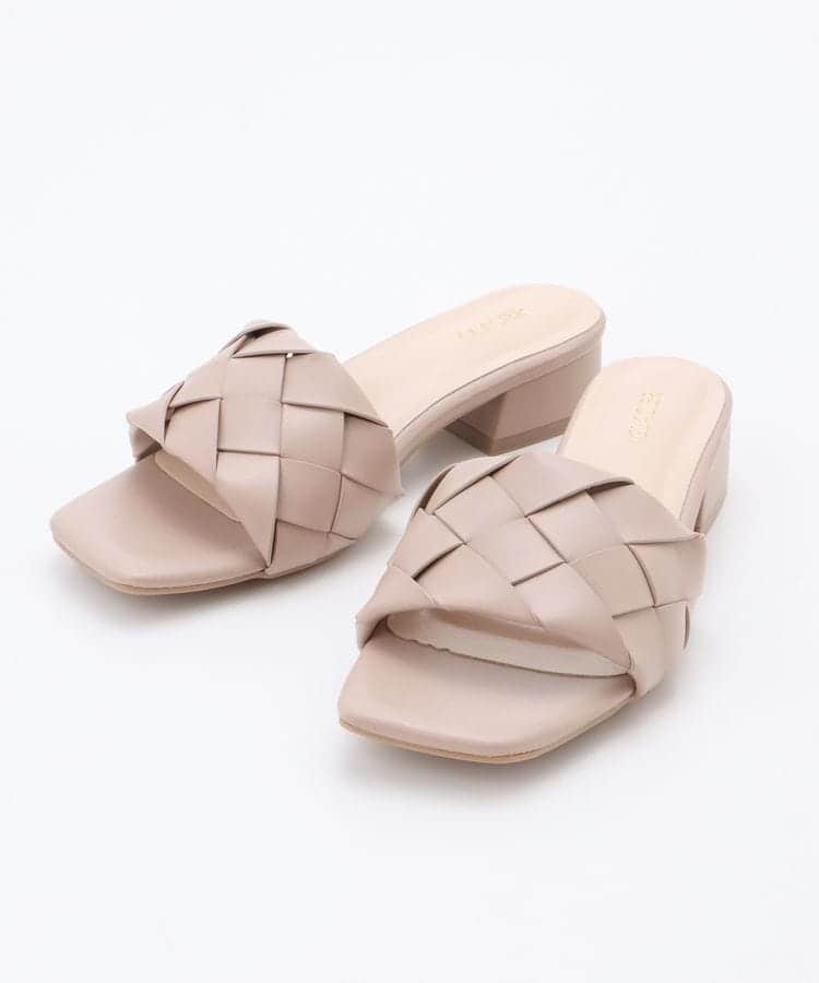 大人かわいいデザインのミュールで、太めの編み込みデザインがアクセントに。