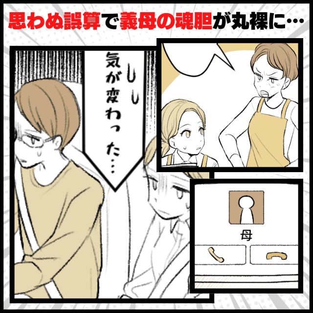 まさか主人公が聞いていると思っていなかった義母は動揺を隠せずしどろもどろ…。