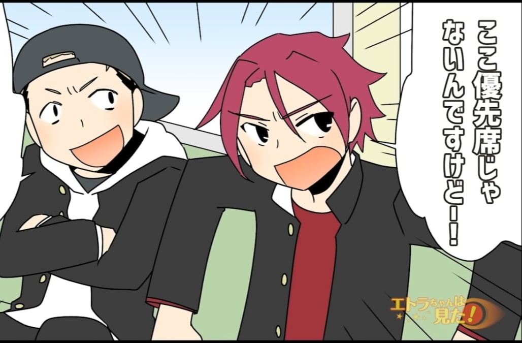 すると、おばあさんの目の前で複数の席を独占する中学生2人組が…。