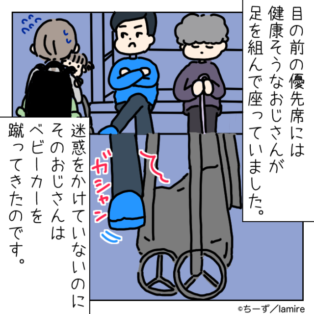 正解は「見知らぬおじさんにベビーカーを蹴られた」でした。