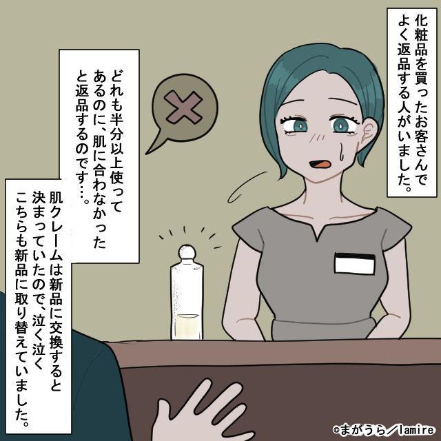 そこには化粧品を買っては「これ返品で…」と返品する迷惑客がいたのです。