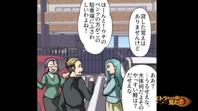住人夫婦は「うちの車の方がこの駐車場にふさわしい」と主人公の車をバカにしてきたのです。