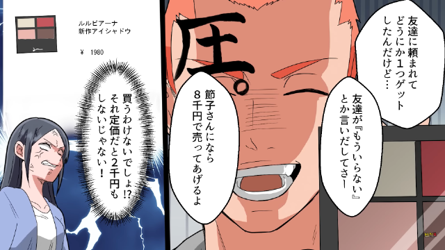 男性は転売屋で、化粧品を転売するために主人公に声をかけただけだったのです。