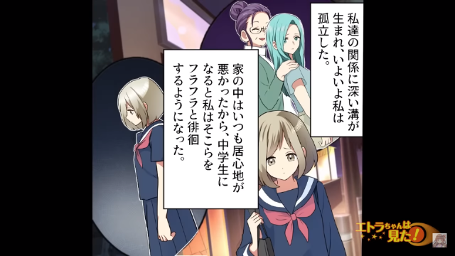 母は姉だけを贔屓し、主人公は「家に居場所がない」と感じていました。