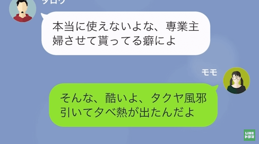 息子の看病に追われ、夫の弁当と朝食の準備ができなかったことまで責められます。