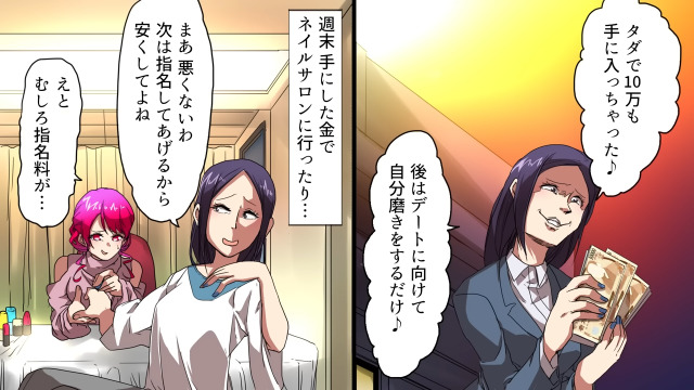 そのお金でネイルサロンに行き、同僚とのデートのために自分磨きに勤しみます。
