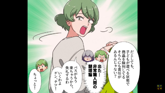 「子どもが食べてしまったのは店側の責任だ」と言い張る主人公。