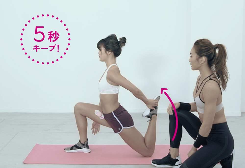 ヒップの筋肉の伸びをしっかり意識するのがポイント。