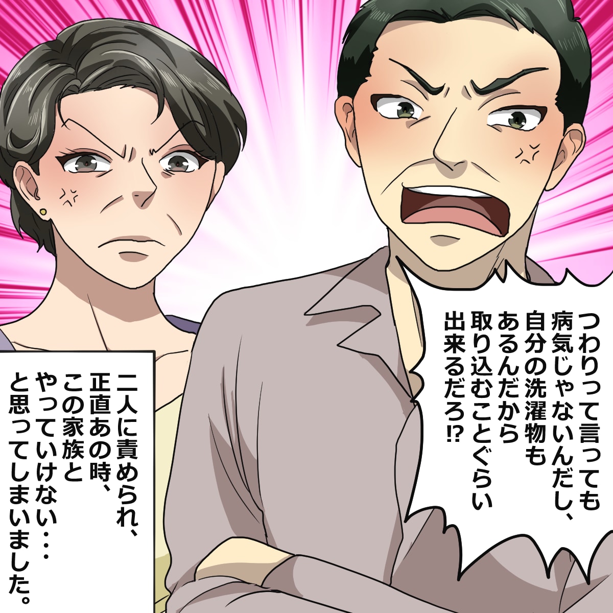 酷い悪阻の中『喧嘩が始まった義父母』。すると数分後…”突然の流れ弾”を食らい同居への不安が高まった。